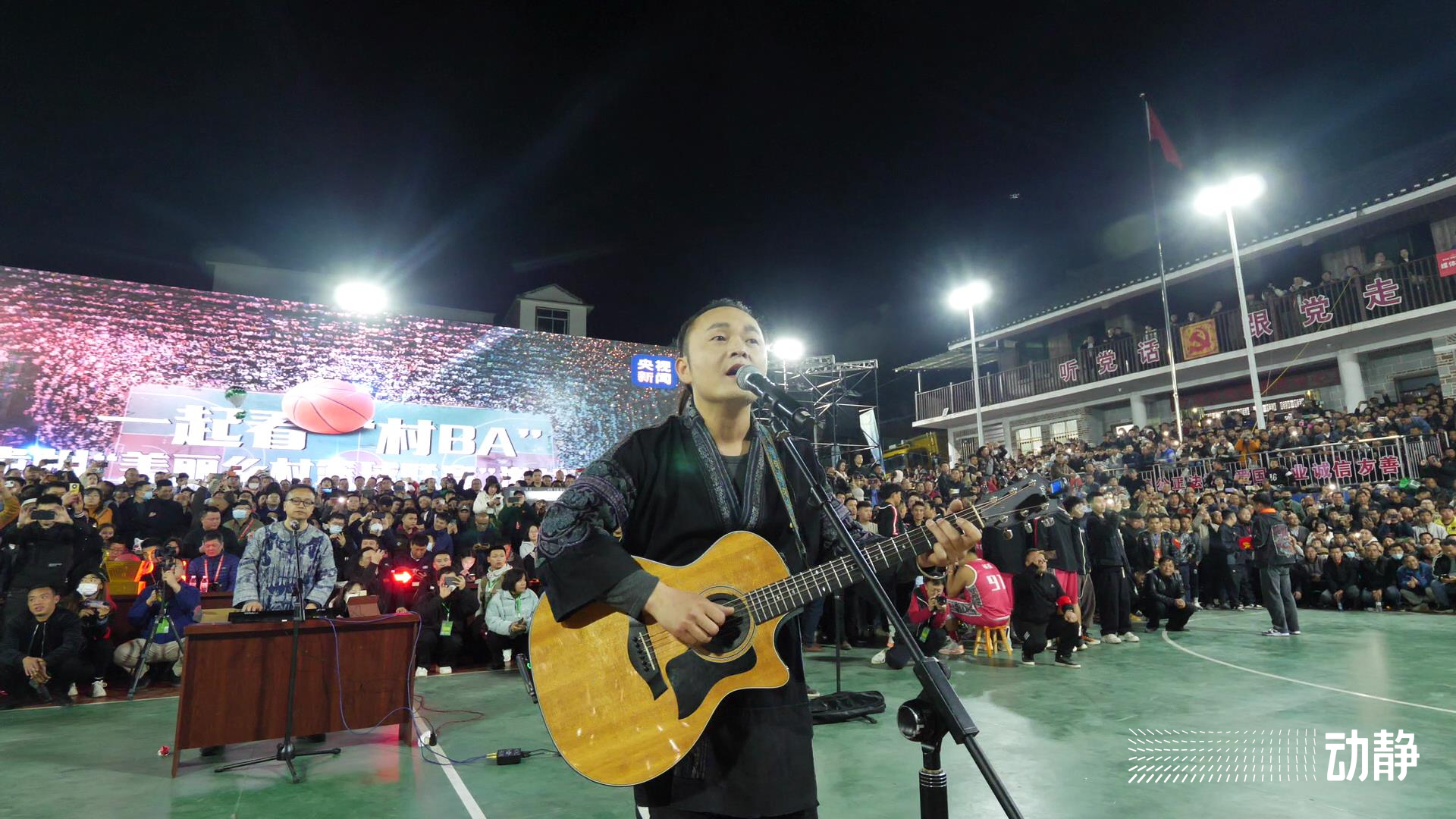 少数民族歌手碟长用一首“苗族+粤语”版的《一生所爱》将全场气氛推向高潮,动静记者田佳佳和我们分享了2万多人一起欢呼呐喊加油的震撼感受:“在这里不仅球场上的球员万人瞩目,观众席上的观众更是一道靓丽的风景,正是他们让‘村BA’火爆出圈,也是他们让全世界都看到了贵州乡村群众对篮球的热爱”。