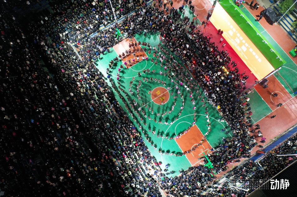 晚上7点,“村BA”总决赛正式开赛,除了球员们的精彩角逐,中场休息表演的苗族蹦迪、也让村里的篮球场变成了万人狂欢的派对。
