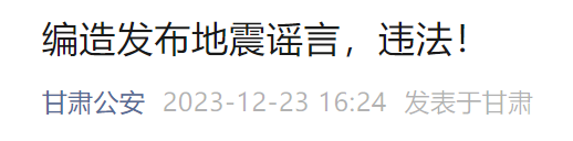 此外,积石山6.2级地震发生后,青海公安网安部门共搜集发现相关网络谣言线索40余条,依法行政处罚3人,批评教育16人。