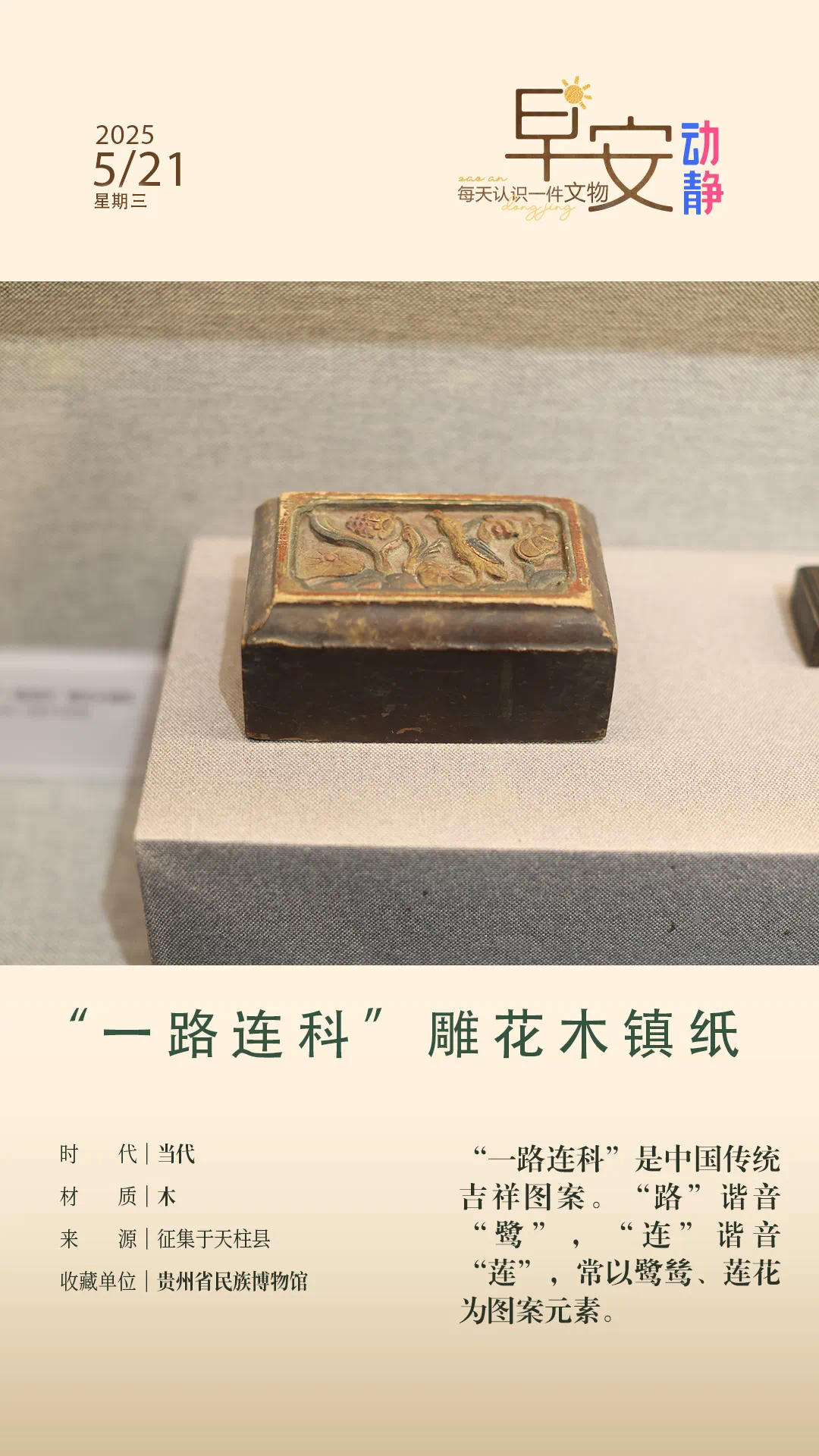 “一路连科”雕花木镇纸