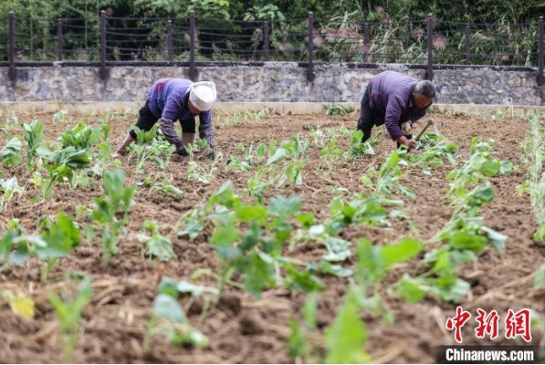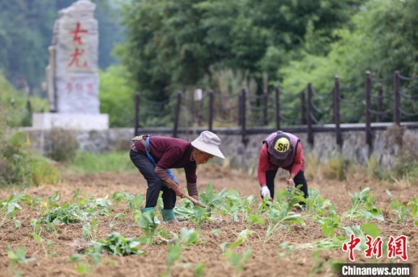 10月10日,贵州省黔南布依族苗族自治州龙里县湾滩河镇,农户在谷腰高标准农田示范基地移栽油菜。中新社记者 瞿宏伦 摄