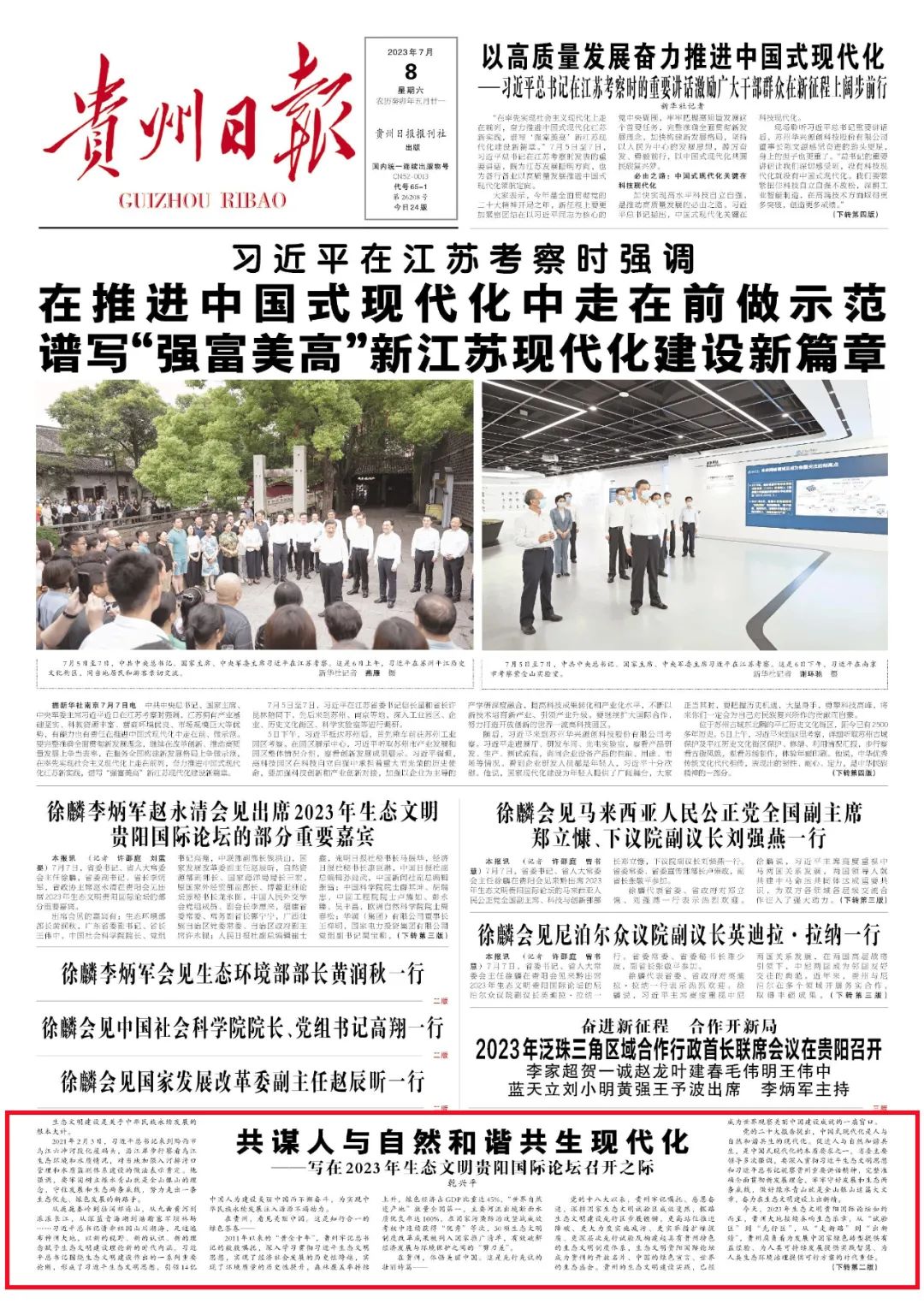 共谋人与自然和谐共生现代化,必须以更实举措牢牢守好发展和生态两条底线,推动贵州高质量发展实现新跨越。