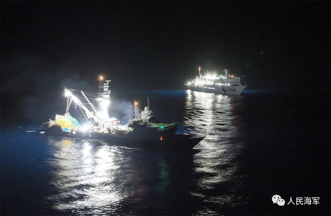 经中国驻基里巴斯大使馆协调,医院船与渔船相向而行,展开生命救援——28小时内高速航行1000公里。