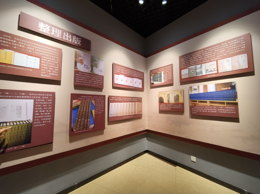 如今,锦屏文书特藏馆内还汇集了来自国内外大学、专家学者的研究学术成果。在文书特藏馆外围墙面,镶有一百多通有关清水江流域重大历史事件、木材贸易、乡规民约、婚俗改革等方面内容的石碑。王宗勋走到乡规民约碑前介绍,“文斗六禁碑,从乾隆年间制订到现在两百多年了,碑中蕴含的诚信守法、保护生态等理念在村寨里代代相传。”