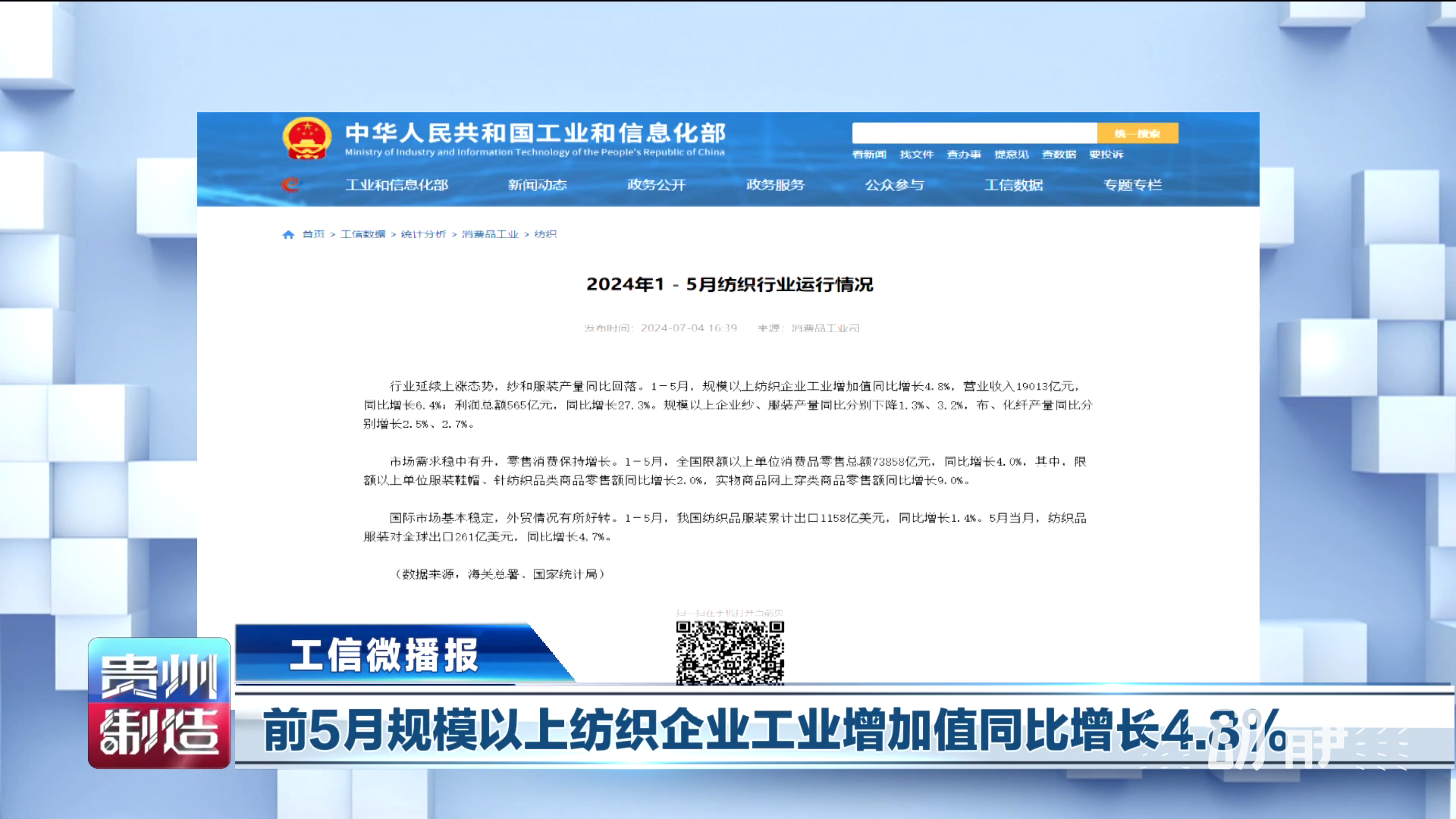 前5月规模以上纺织企业工业增加值同比增长4.8%