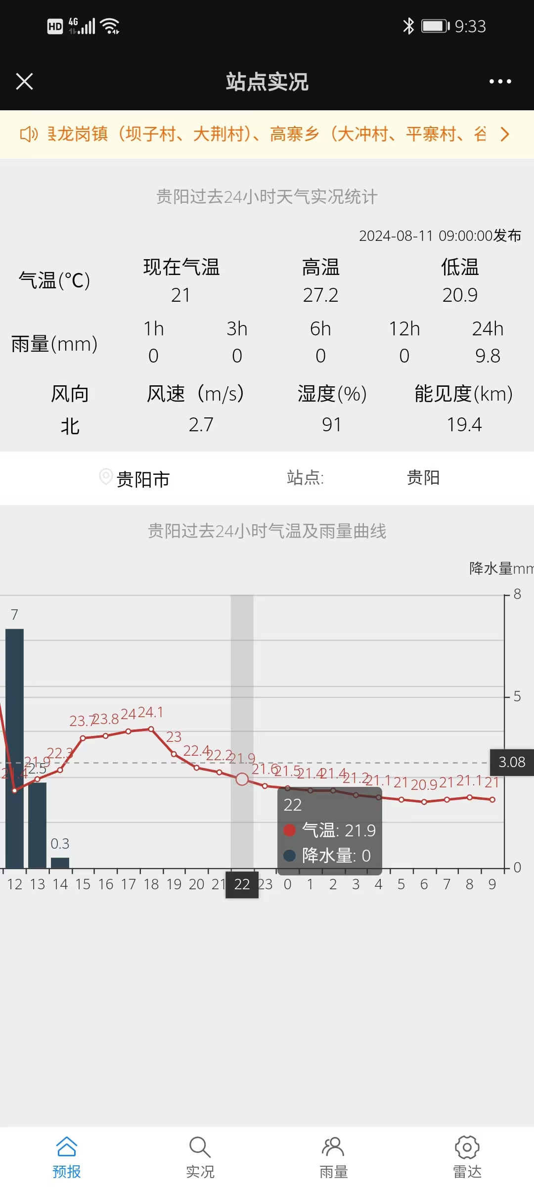 大范围的降水也带来大幅度的降温,数据显示,今日早晨贵阳贵安多地最低气温在20℃以下,全市8个国家级气象监测站中,以开阳县18.8℃最低。截至今日早晨9时,各地气温与昨日同一时间相比下降4℃左右。