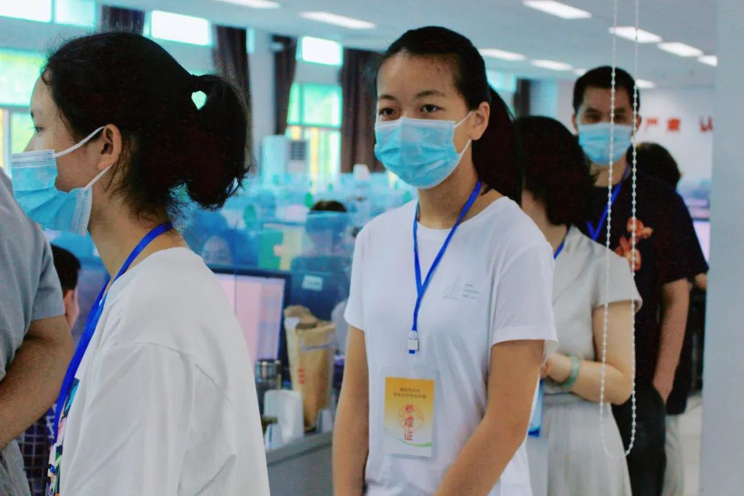 来到中考阅卷中心大门处,所有人员佩戴好口罩,并根据阅卷保密要求,将随身携带的电子产品寄存,在相关工作人员的带领下,有序进入阅卷现场。