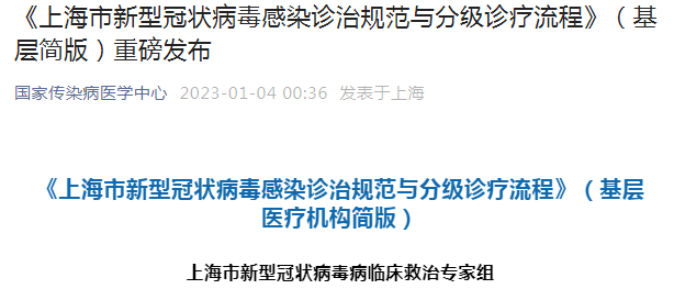 1月4日,“国家传染病医学中心”微信公众号发布《上海市新型冠状病毒感染诊治规范与分级诊疗流程》(基层医疗机构简版)。