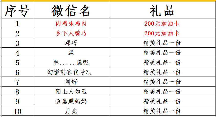 参加活动的中奖名单