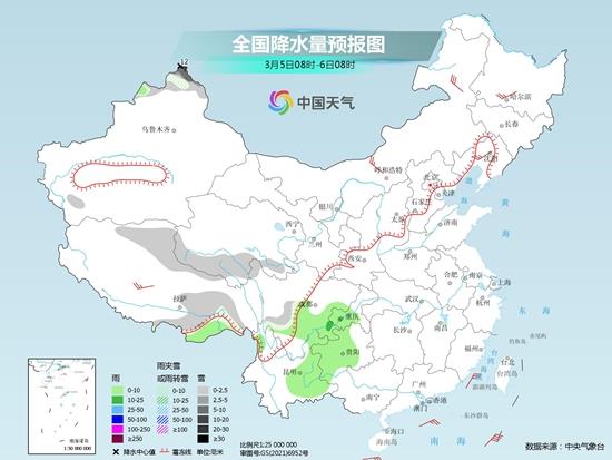明天,新疆北疆北部、西藏北部和东部、青海南部、川西高原南部等地部分地区有小到中雪或雨夹雪,其中,新疆阿勒泰等地局地有大到暴雪。四川东南部、重庆西南部、贵州中西部、云南东部等地部分地区有小到中雨。