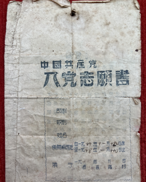 1947年10月2日至10日,华东野战军在山东昌邑境内胶河一线对国民党军进行了一次反攻战役,史称胶河战役。时年19岁的王玉林在肩负艰巨攻城任务的关键时刻果断选择加入共产党,毅然决然地递交了入党志愿书,提出火线入党。