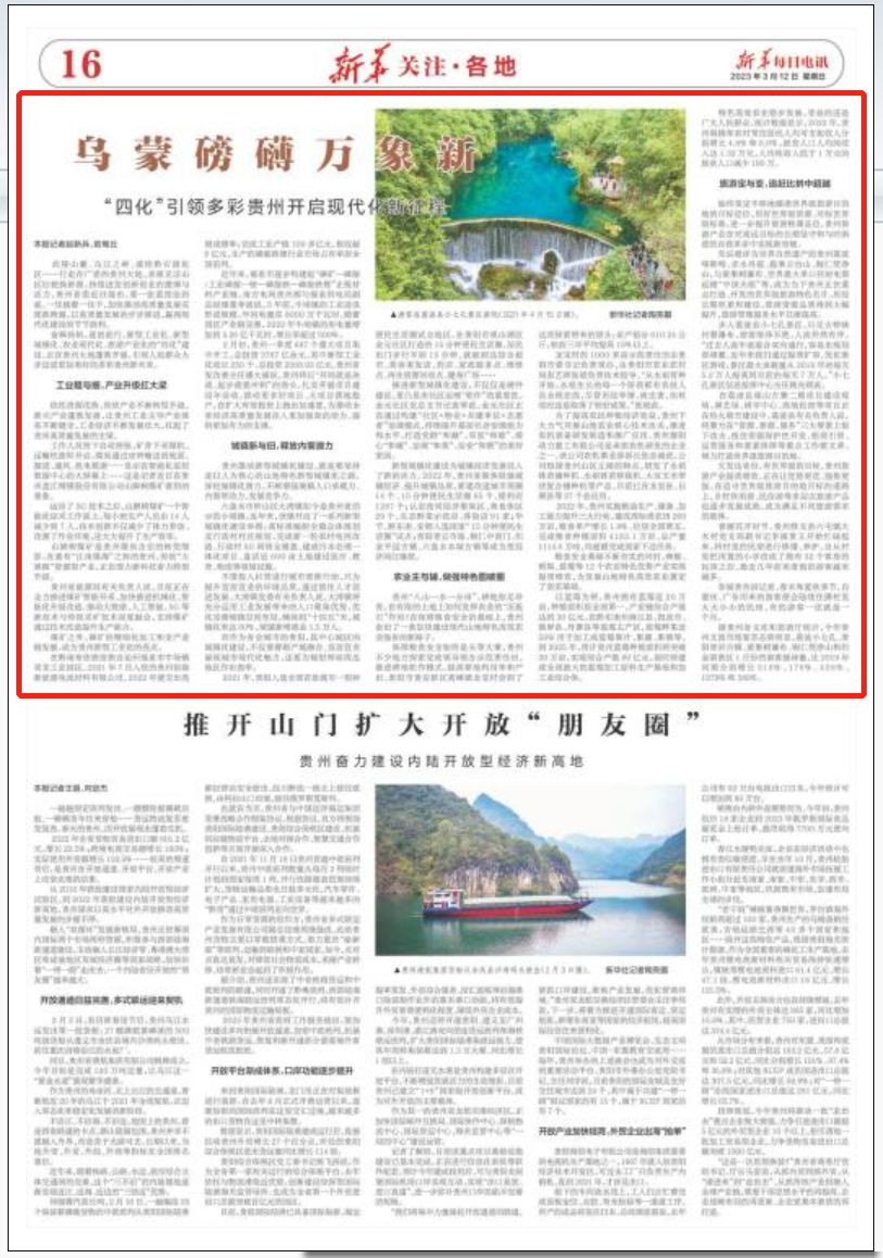 奋楫扬帆,逐浪前行。新型工业化、新型城镇化、农业现代化、旅游产业化的“四化”建设,正在贵州大地蓬勃开展,引领人民群众大步迈进更加美好的多彩贵州新未来。