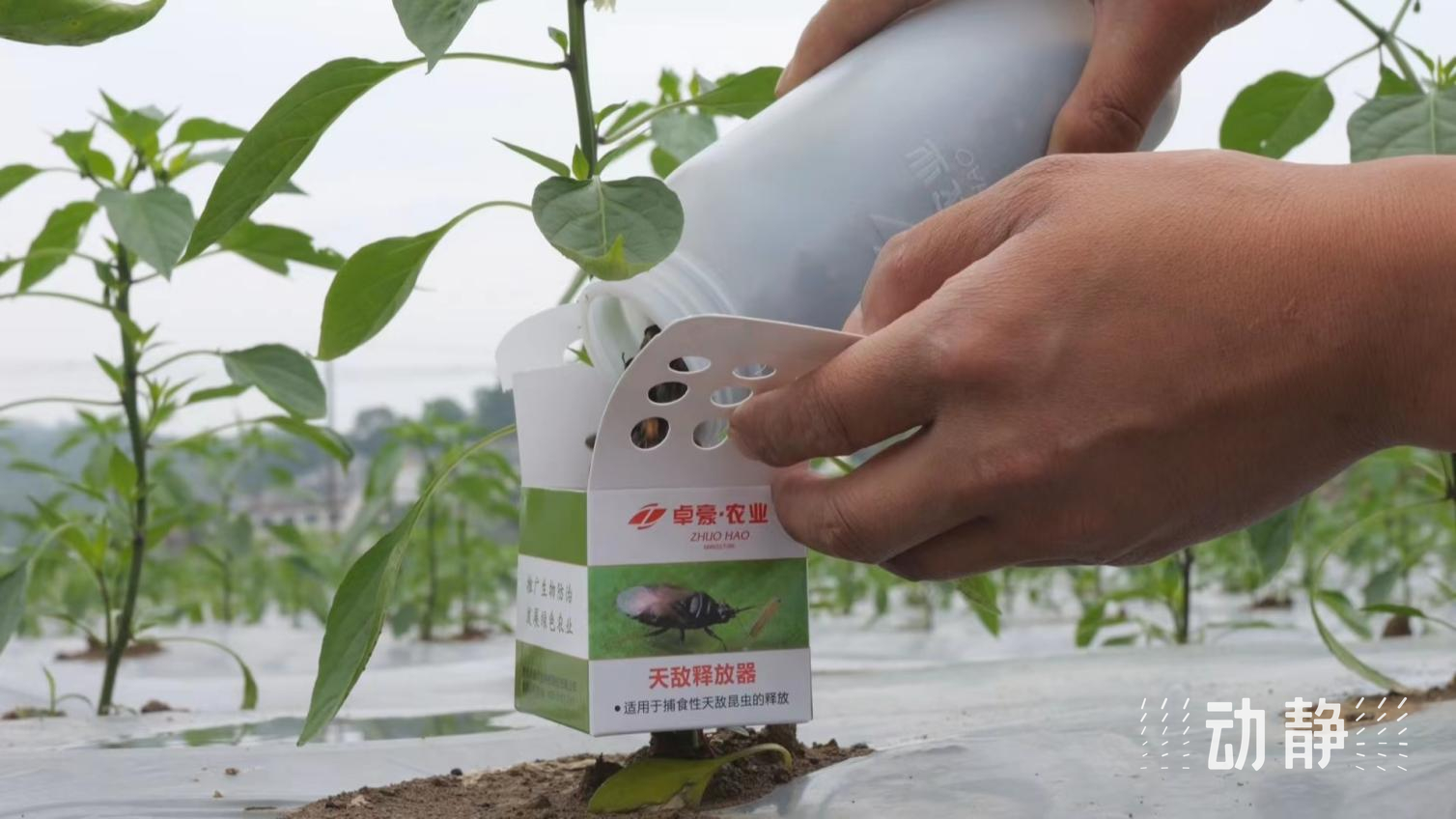“以虫治虫”是通过在田间释放农作物害虫的天敌来消灭害虫,起到病虫害绿色防控的作用。5月中下旬,正是“以虫治虫”的投放阶段,在遵义市播州区石板镇的毛坝村,贵州卓豪农业科技股份有限公司的工作人员正在辣椒田里投放害虫天敌小花蝽。
