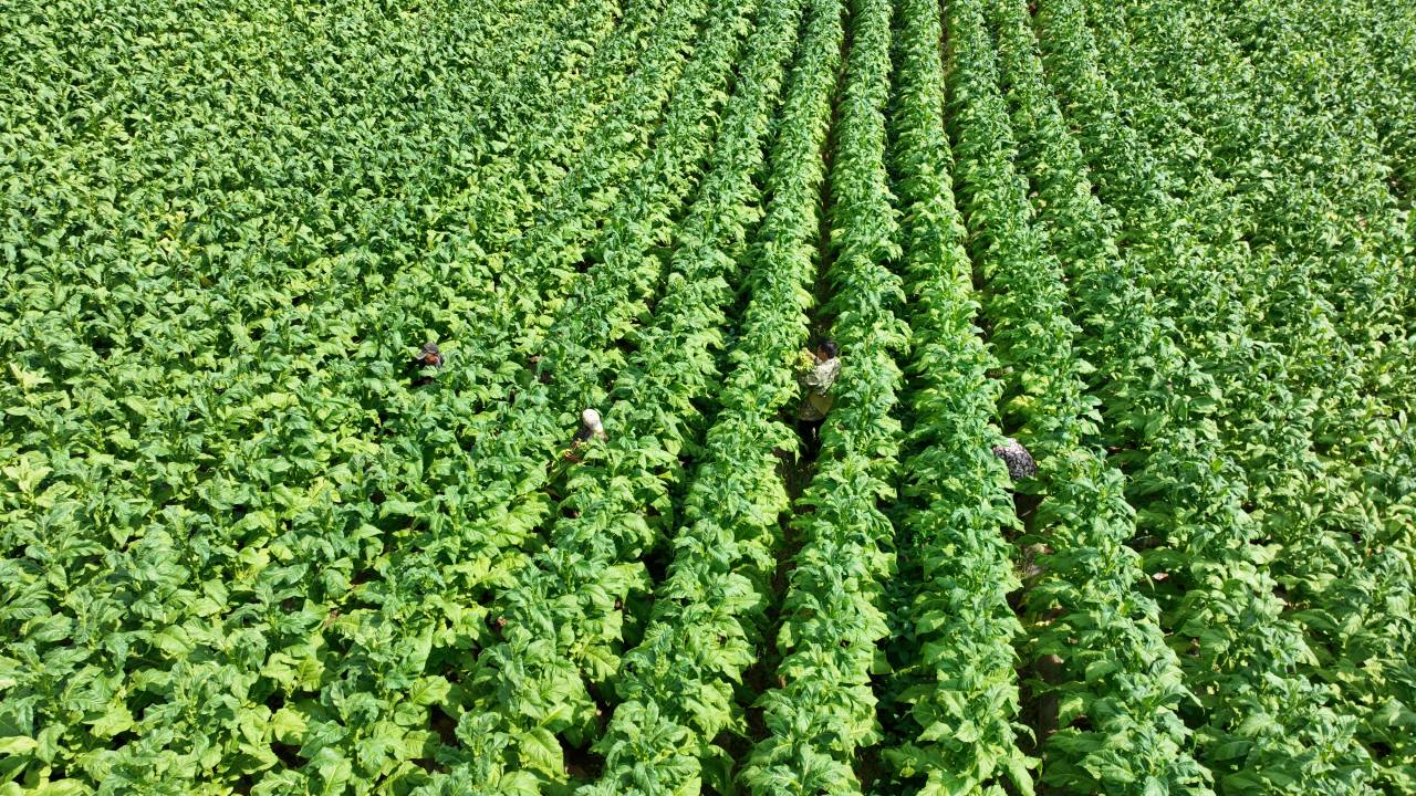 走进毕节市纳雍县乐治镇塘边社区,成片的烤烟紧密相连,绿油油的如同厚厚的绿毯子,一块块烟田星罗密布,烟叶随风轻摇。
