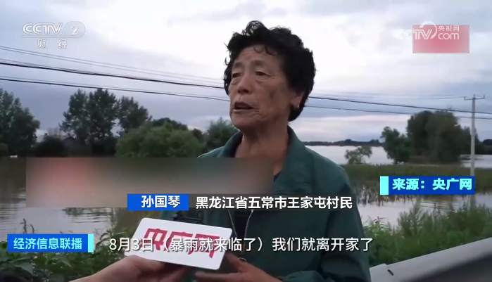 黑龙江省五常市王家屯村民 孙国琴:8月3日我们就离开家了,家里插秧机也没拿出来,还有车没出来,这附近都是“汪洋大海”了。全淹了,水稻没了。