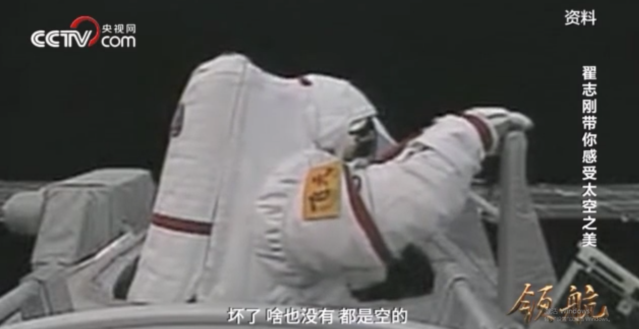 这张图片是中国太空漫步第一人翟志刚第一次出舱时的画面。翟志刚身着宇航服,面对镜头,向“地球人”挥手致意。作为太空漫步重要装备,宇航服设计精巧,制作严格,每道工序、每个零件都要求完美无瑕。