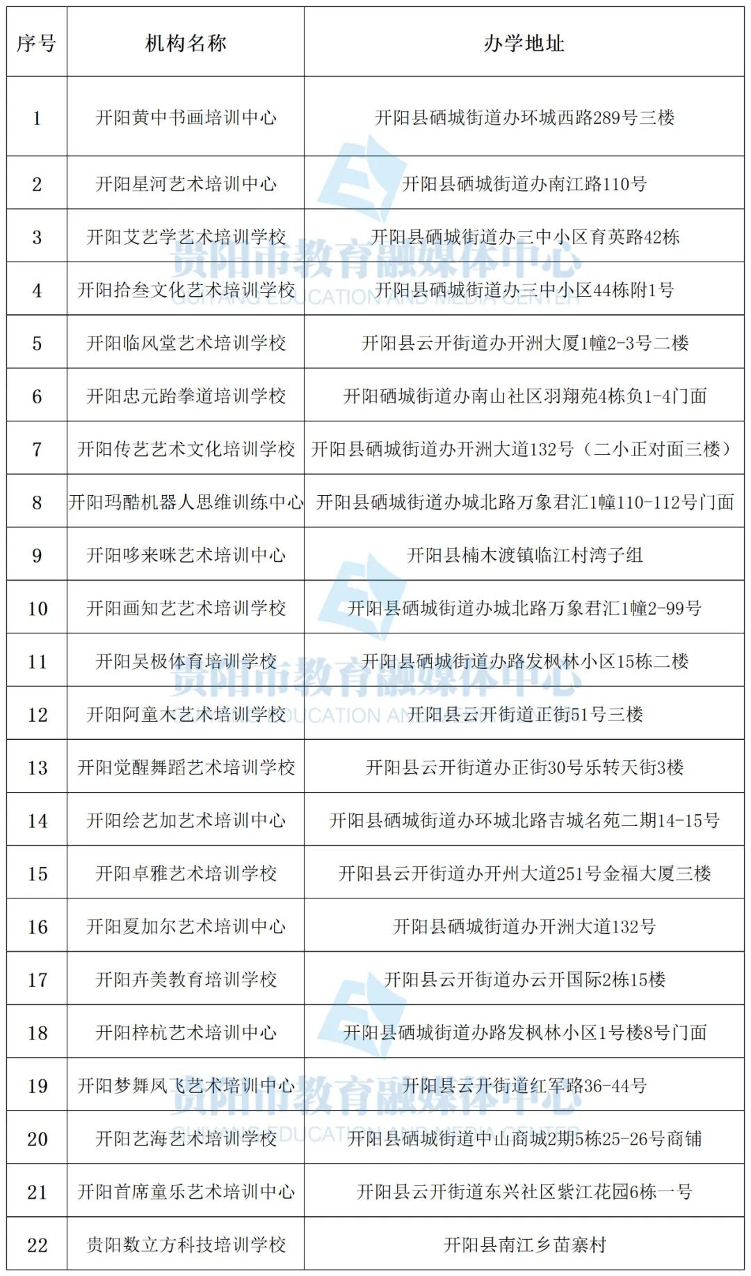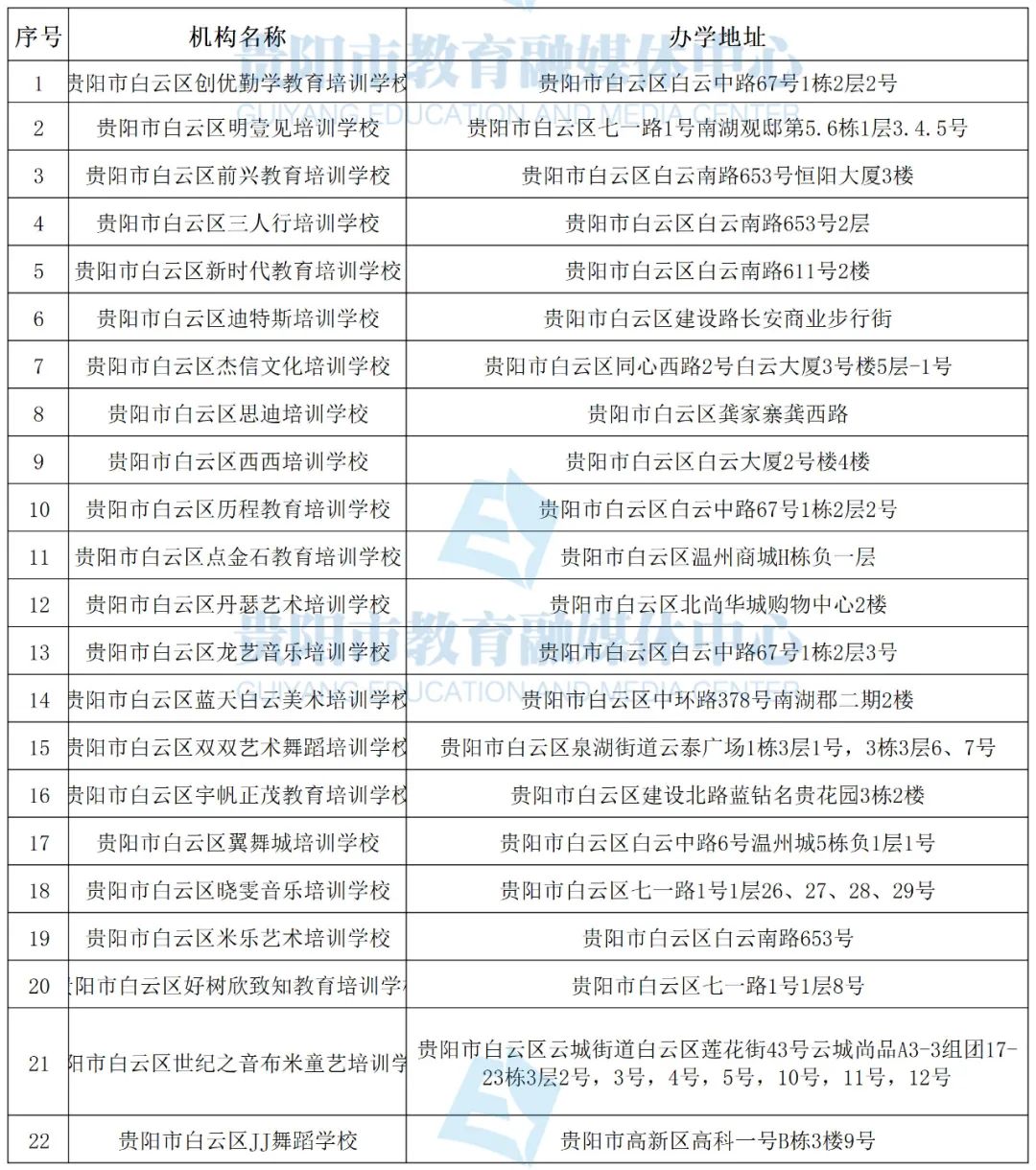 近日,为持续巩固“双减”成效,抓好校外培训机构专项治理工作,保障广大学生家长的合法权益,贵阳市教育局发布各区(市、县)校外培训机构“白名单”。一起来看~~
