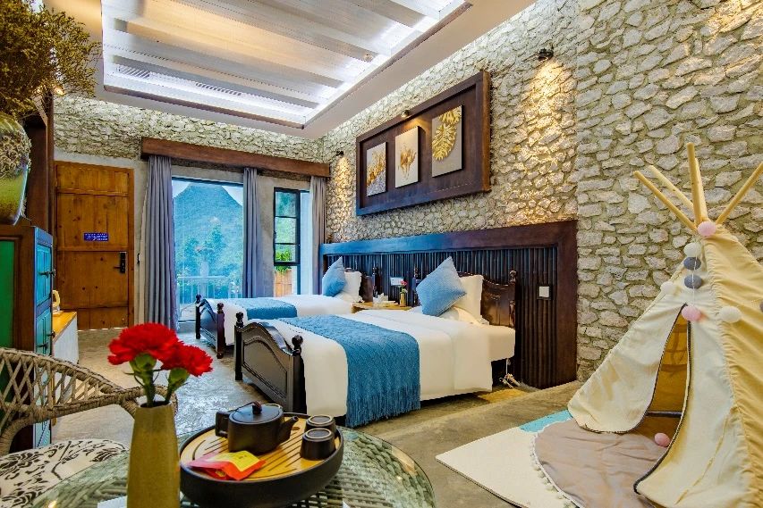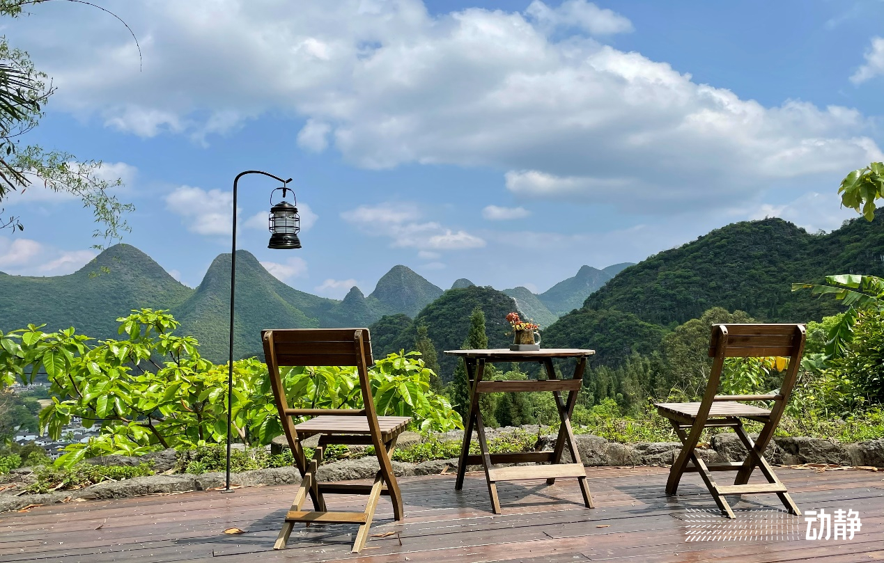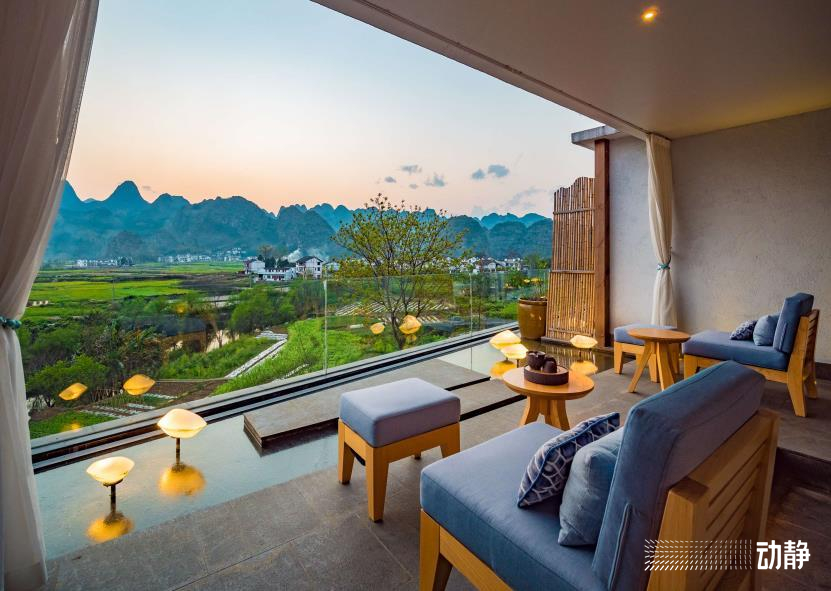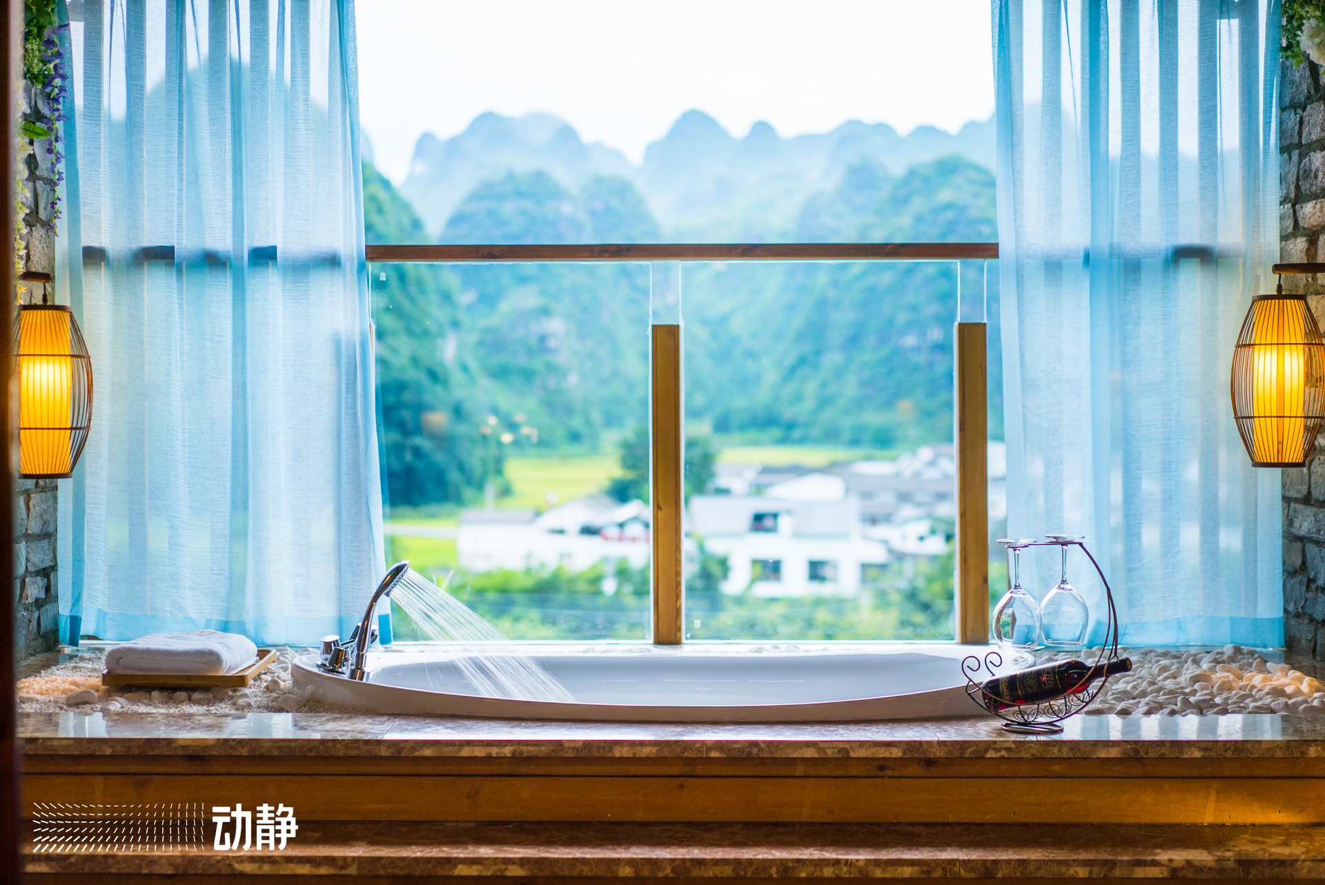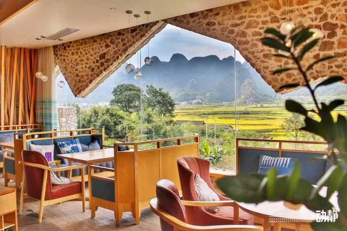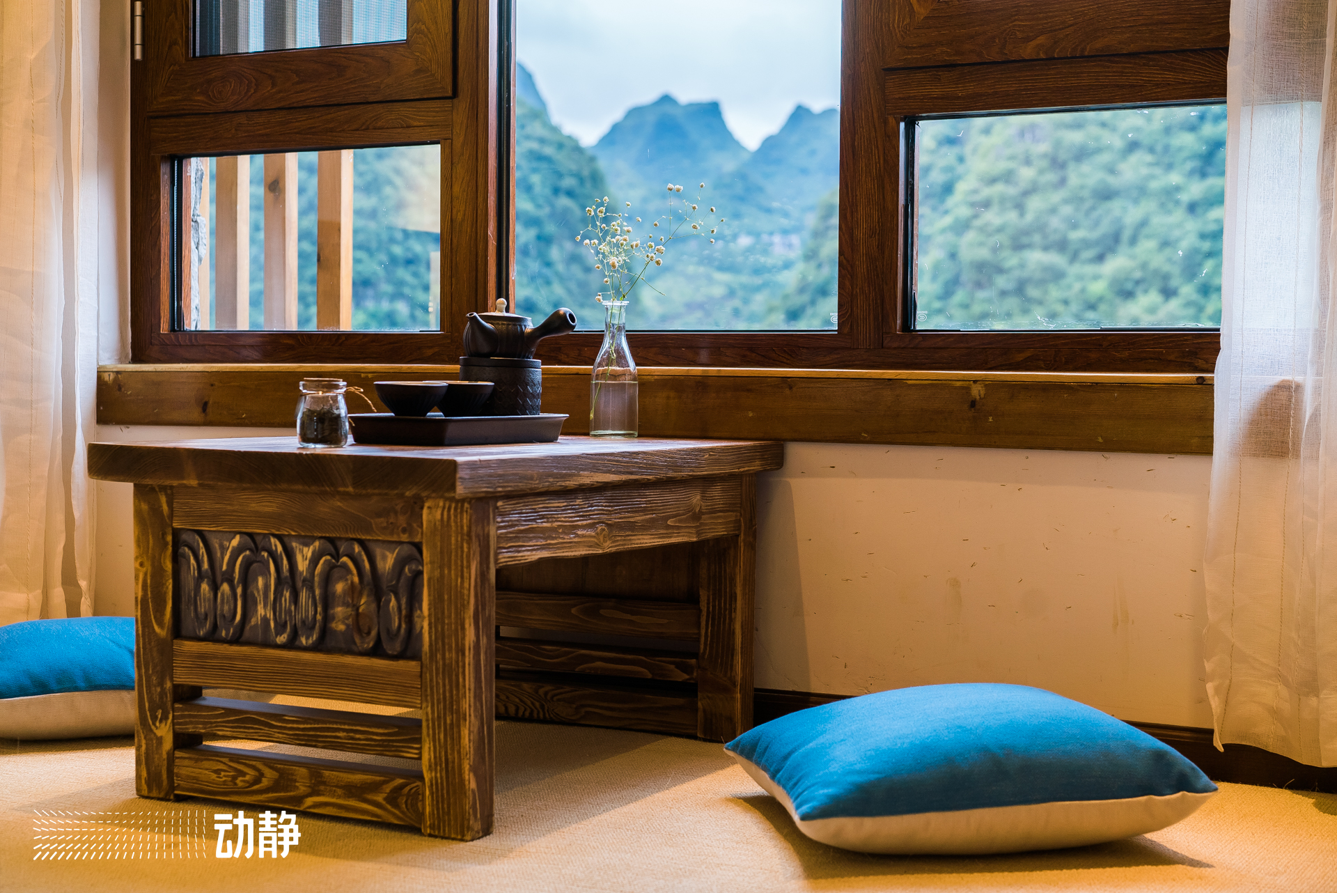 景棠客栈位于兴义市风景优美的万峰林景区内,坐落于群峰环抱之间,依山而建,逐水而居。客栈是由当地布依族民居改建而成,院落与外观设计保留了原本民居特色,且采用了道法自然的设计手法把自然山景和建筑融为一体,在客房就能感受到山体自然的美景。