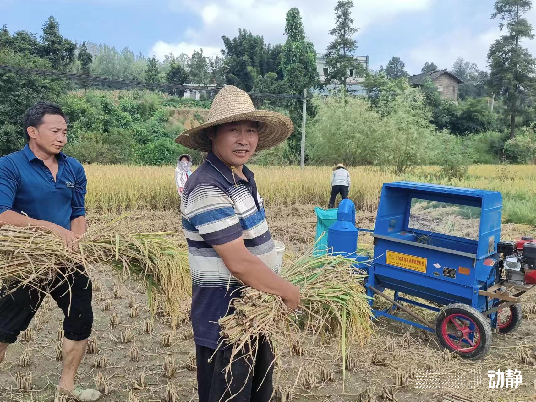 在安底镇桂花村大元大坝伴随着收割机的轰鸣声与传统的人工收割并行,形成一道靓丽的风景,一行行水稻源源不断被卷入,转眼间变成沉甸甸的稻谷,被村民们用袋子打包装车,运到家里的院子晾晒。部分农户根据需求采用收割机收割水稻,不仅能直接实现脱粒,还可将秸秆粉碎处理,还肥于田,大大节约了人力和成本;另一部分农户采取人力采收,安底镇的酒厂以1元/个收购晒干稻草。