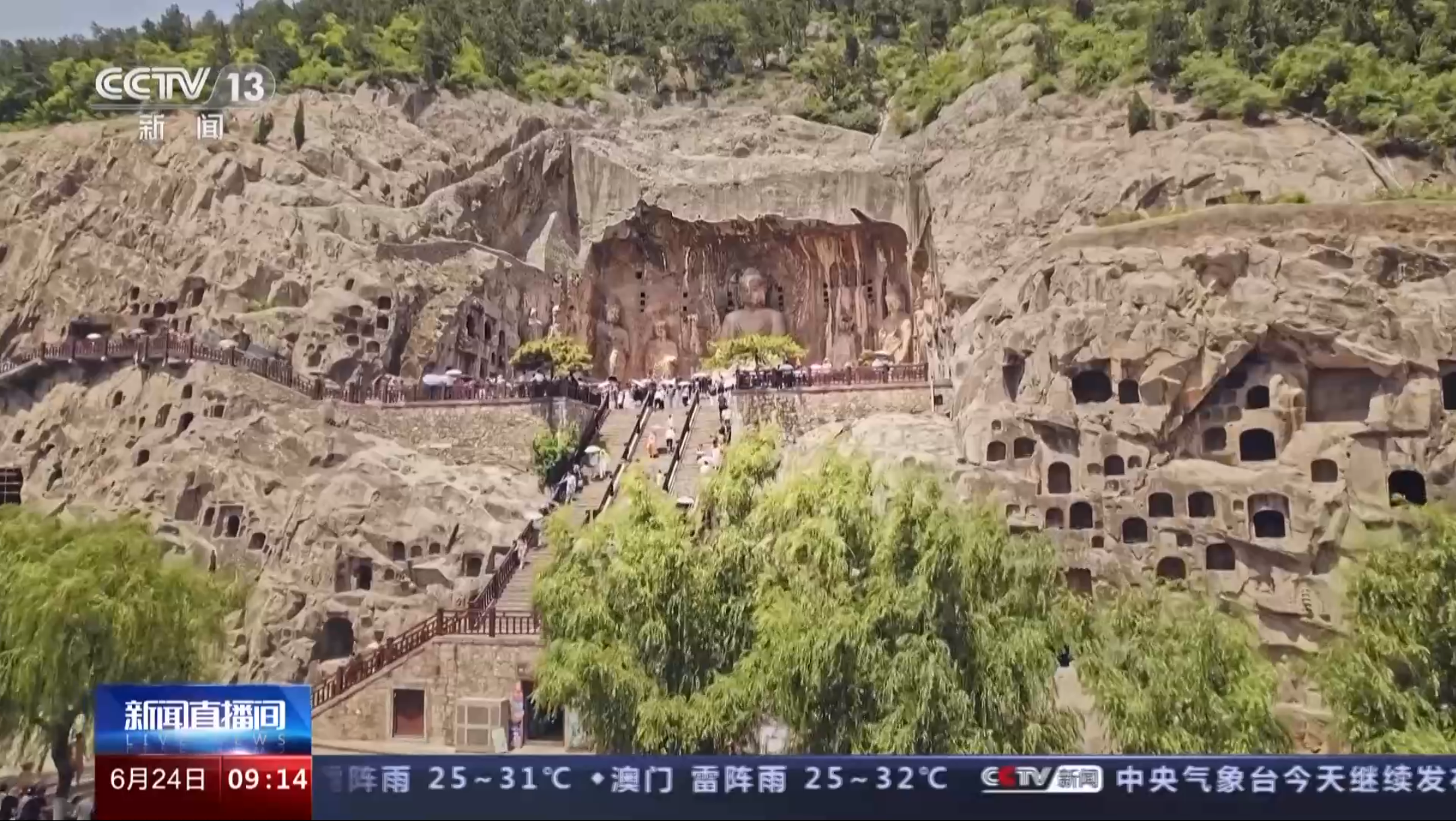 端午假期,在河南洛阳龙门石窟景区的无上龙门沉浸式体验馆,游客一进门便被眼前的投壶比赛所吸引,也纷纷拿起箭矢、投向箭壶,体验古人端午投掷的乐趣。景区还特别为游客准备了系五彩绳、拓印碑刻等丰富多彩的端午非遗民俗体验活动,让游客感受节日氛围、收获游玩乐趣。