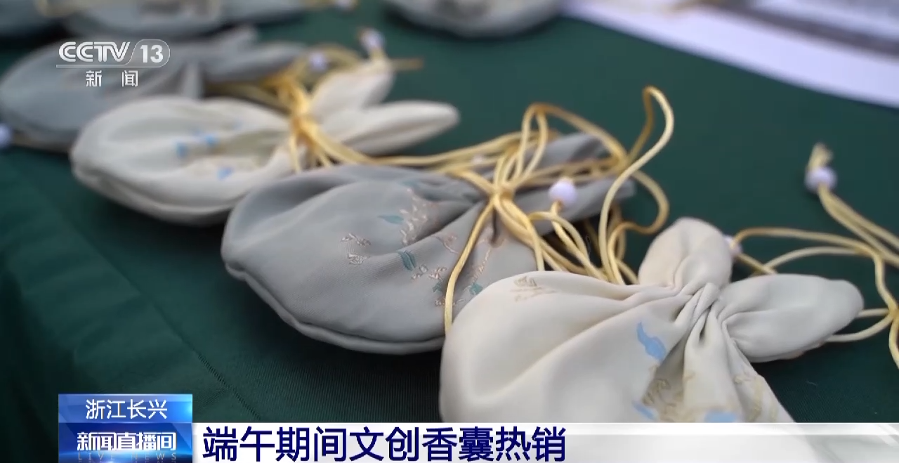 端午节,不少地方都有熏艾叶、挂菖蒲、佩香包等习俗。在浙江长兴县李家巷石泉村,当地村民推出定制特色香包系列文创产品,吸引了大批市民前来参加这场端午庆祝活动。 除了香包,附近的村民还把自己的手工制品、非遗美食摆了出来,供游客观赏、品尝。