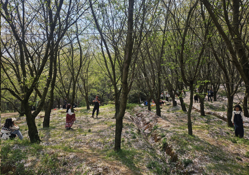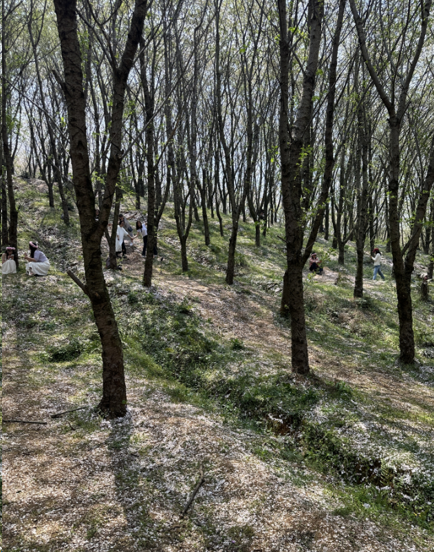 步入贵安樱花园,记者看到目前园区仅剩零星粉白色樱花高挂枝头。伴随微风拂面,一片片花瓣飘洒成雨,定格今年花期最后的浪漫瞬间。