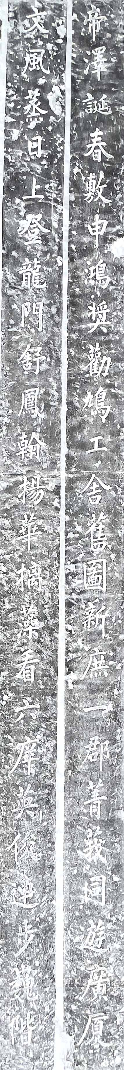从二堂“折而向东”,即试院的东区。有静室二,各面阔三间。往里为厨房和厕所。整个东区回廊相连,中为“植桂轩”,以庭中多植桂树得名。张锳有联,云:“莞簟肇修,盘龙井,踞凤岩,宏开甲第;幨帷暂驻,瞻青山,眺绿水,小憩庚邮。”莞簟(diàn)形容举止规范,幨(chān)帷表达尊敬。植桂轩前置有台,一为“公宴处”,接待官员吃饭的地方。一为“演剧处”,相当于戏台。戏台有额匾,题:“观文成化”,源自《易经》,意思是通过表演,实现教化。两侧有联,云:“想有奇文参活相;全凭巨眼识真诠。”大概是舞台上各种稀奇的表演,要通过慧眼才能看清道理。戏台东侧也悬匾额,题“半面全神”,源自南宋教育家魏了翁在鹤山书院读书台的诗句,“半面描成云色补,全神出现月光来。”鹤山书院也栽种了许多桂花,和植桂轩有异曲同工之妙。