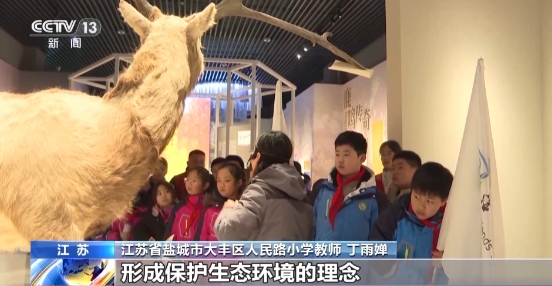江苏省盐城市大丰区人民路小学教师丁雨婵:我们正是想通过这样寓教于乐的方式,让孩子们了解保护湿地的重要意义,让他们在参观过程中,形成保护生态环境的理念,影响和带动身边的人珍爱湿地、保护湿地。