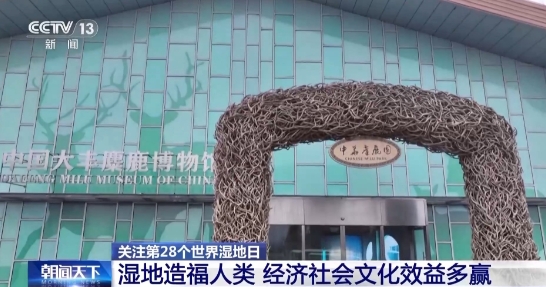 位于黄海湿地的江苏大丰麋鹿国家级自然保护区拥有世界上数量最多的麋鹿种群,建在这里的大丰麋鹿博物馆,展示麋鹿保护成果,传播湿地保护文化。