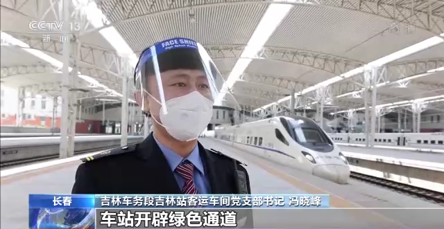 吉林车务段吉林站客运车间党支部书记 冯晓峰:为确保学生安全返乡,车站开辟绿色通道,增派引导员,配合地方防疫人员开展学生旅客进站测温验码,核酸检测工作。