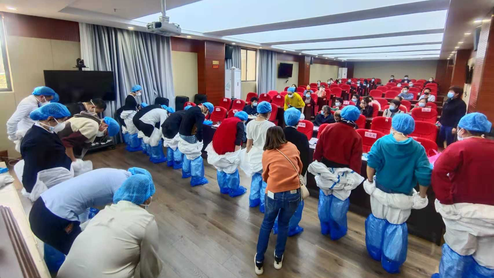 培训由修文县人民医院院感专职人员主讲,内容主要包括个人防护用品的穿脱、采样点环境消杀及医疗废物处置流程、核酸样本转运流程、信息登记流程及采样点布置要求等知识与技能。