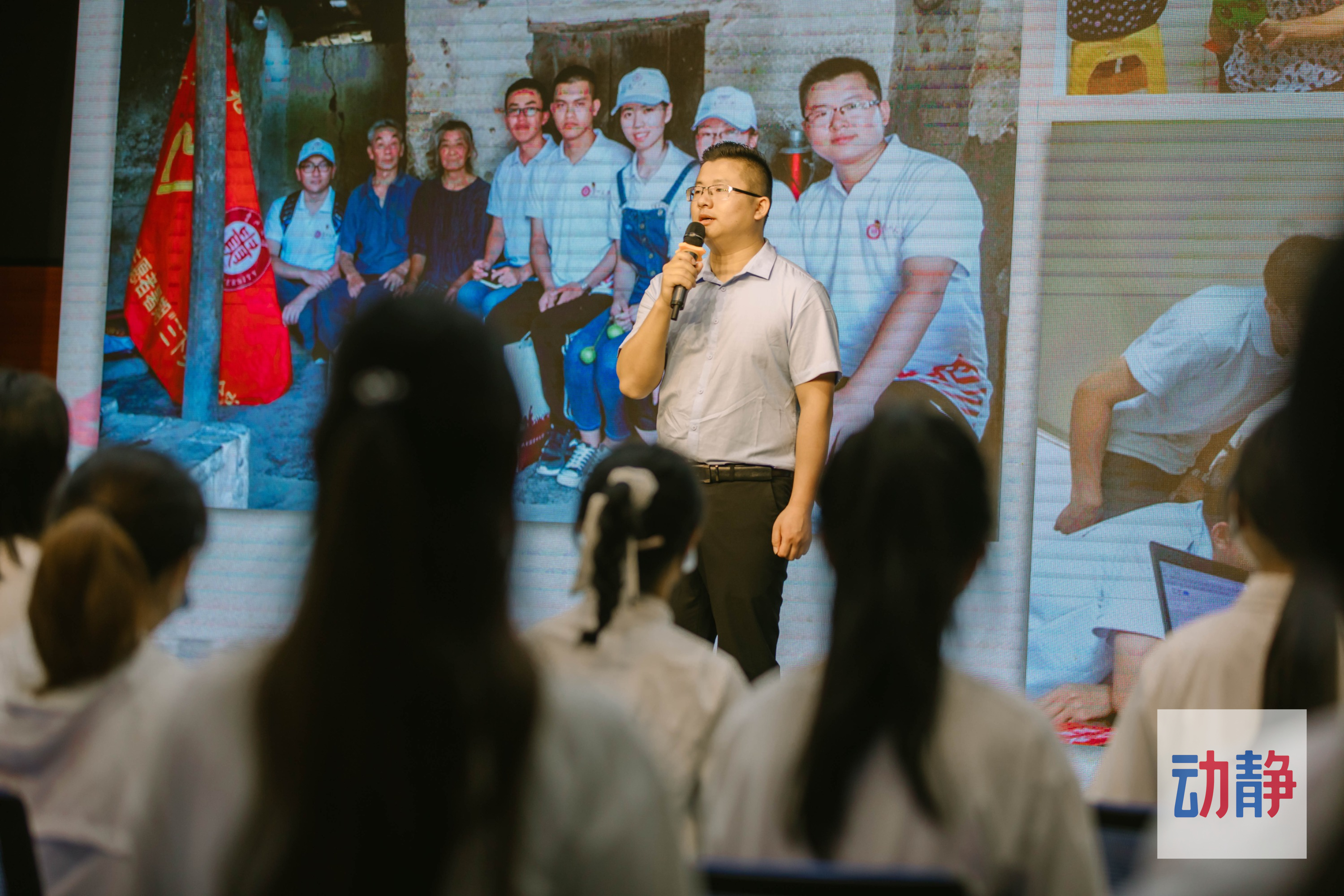 第二个是关于宣讲的故事。2019年8月,我带队到黎平县各村寨和社区开展政策宣讲等活动。第一场宣讲原本安排在晚上7点,因为突然停电,打破了计划。晚上9点过来电,大家兴奋不已,就动员在乘凉的村民们集中起来进行宣讲,结束时已经深夜了,没有一个中途离开的村民,是同学们的热情感染了大家。宣讲成功之后,小伙伴们不断总结经验,反复修改讲稿,常常加班到深夜,还熬夜编排文艺节目。后来宣讲效果一次比一次好。小伙伴们认识到,只要敢于吃苦,勇于探索,就会不断进步。