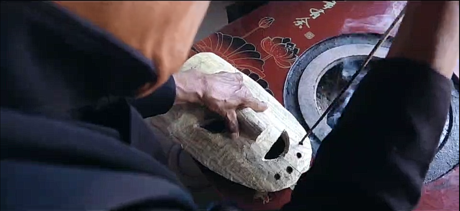 “他们一个小一个两千岁,‘惹嘎摩’是上天派下的天神,而我戴在脸上的面具所代表的‘骂哄摩’就是彝族长者。在‘惹嘎摩’的指导下,‘我’带领‘啥布摩’‘阿博摩’‘阿大摩’‘妮不摩’走出森林,获取种子、驯牛,并在土地肥美的地方生息繁衍,三收喜庆,直至人畜兴旺,直至和美安乐。”文道华说。