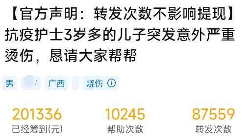 3岁多的儿子在家意外被烫伤,求助信息发出后,广西各地的热心网友纷纷伸出援手,4个小时就筹到20多万元善款。这几天,到北海抗疫的玉林护士黎声美心痛又感动。
