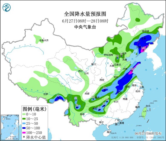 中国天气网讯 (6月26日)开始,四川盆地至华北、黄淮、东北一带新一轮强降雨逐渐发展起来,部分地区还同时伴有强对流天气,昨天夜间,本轮强降雨进入最强时段。今天雨带整体东移,山东、江苏、安徽等地雨势猛烈,同时东北地区的降雨也将明显增强,上述地区公众需注意防范强降雨天气带来的各种不利影响。