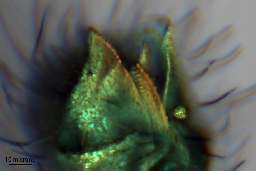 研究人员通过南京古生物所的激光共聚焦显微镜、荧光显微镜等先进科学仪器的仔细观察,发现这两只雄蚊均保存了特有的刺吸式口器:包括呈尖锐三角形的下颚及延长的具有小齿的构造等。现今雌蚊具有刺吸式口器用于吸血,而雄蚊口器退化则多吸食花露。此次发现的雄蚊刺吸式口器推测在1.3亿年前雄蚊也是吸血昆虫。