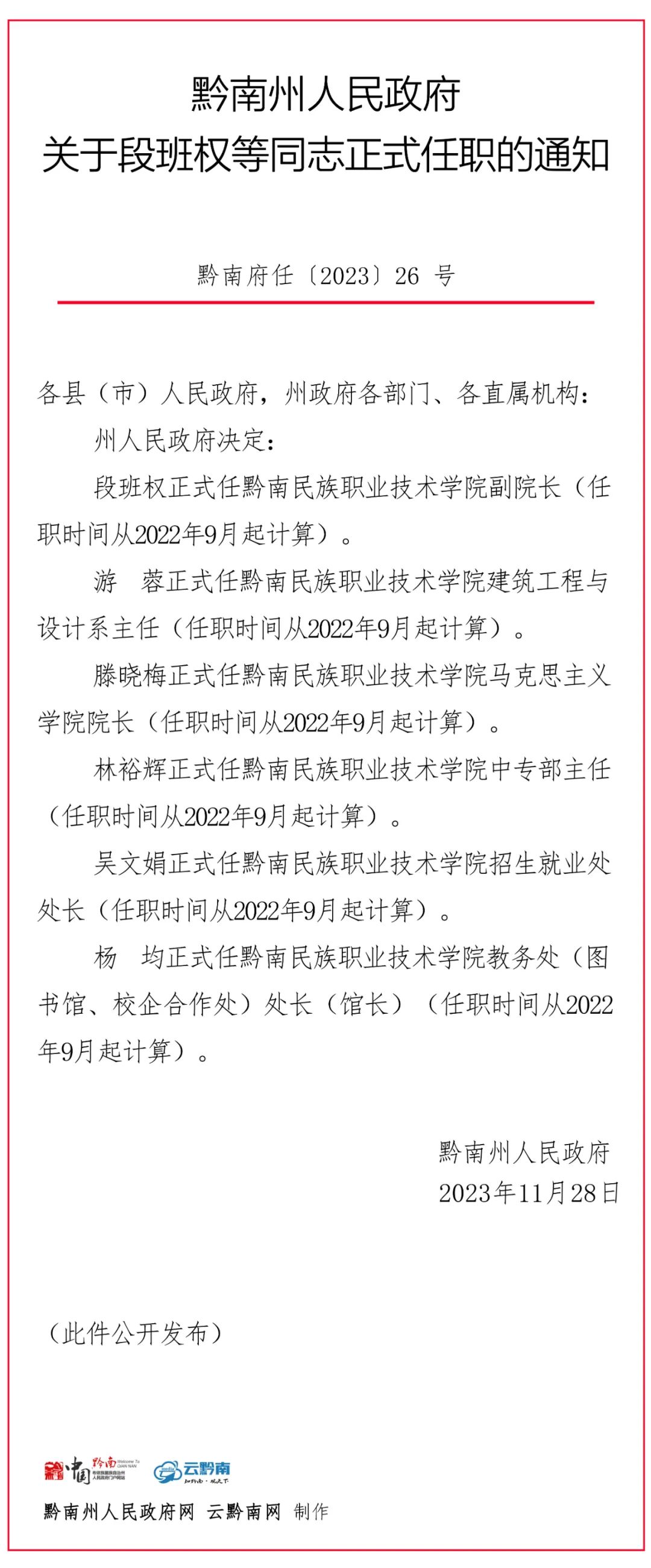 黔南一地最新人事任免