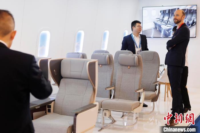 参观者了解航宇嘉泰的民航座椅。中新网记者 殷立勤 摄