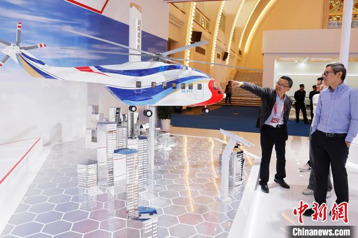 参观者了解AC313直升机。中新网记者 殷立勤 摄
