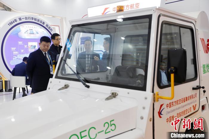 参观者了解东航实业旗下中国东方航空设备集成有限公司新能源特种车辆。中新网记者 殷立勤 摄