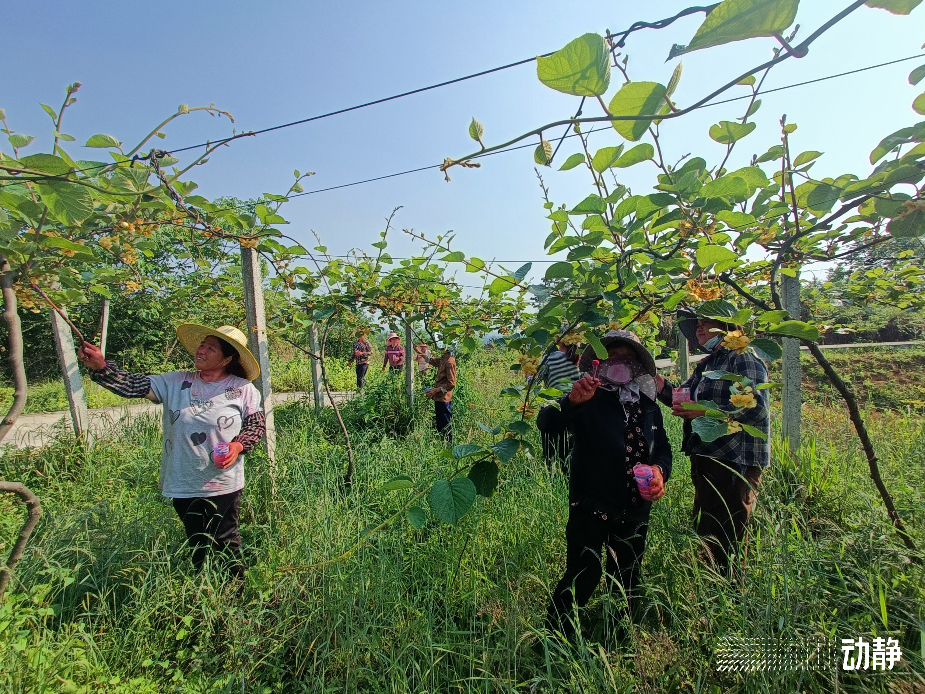 猕猴桃基地负责人陈正刚介绍:“我们这几天授粉每天都是几十个人,从现在开始授粉,马上蔬果、除草,一年下来人工工资大约是十多万元,方便了大家,也解决了一些就业。”